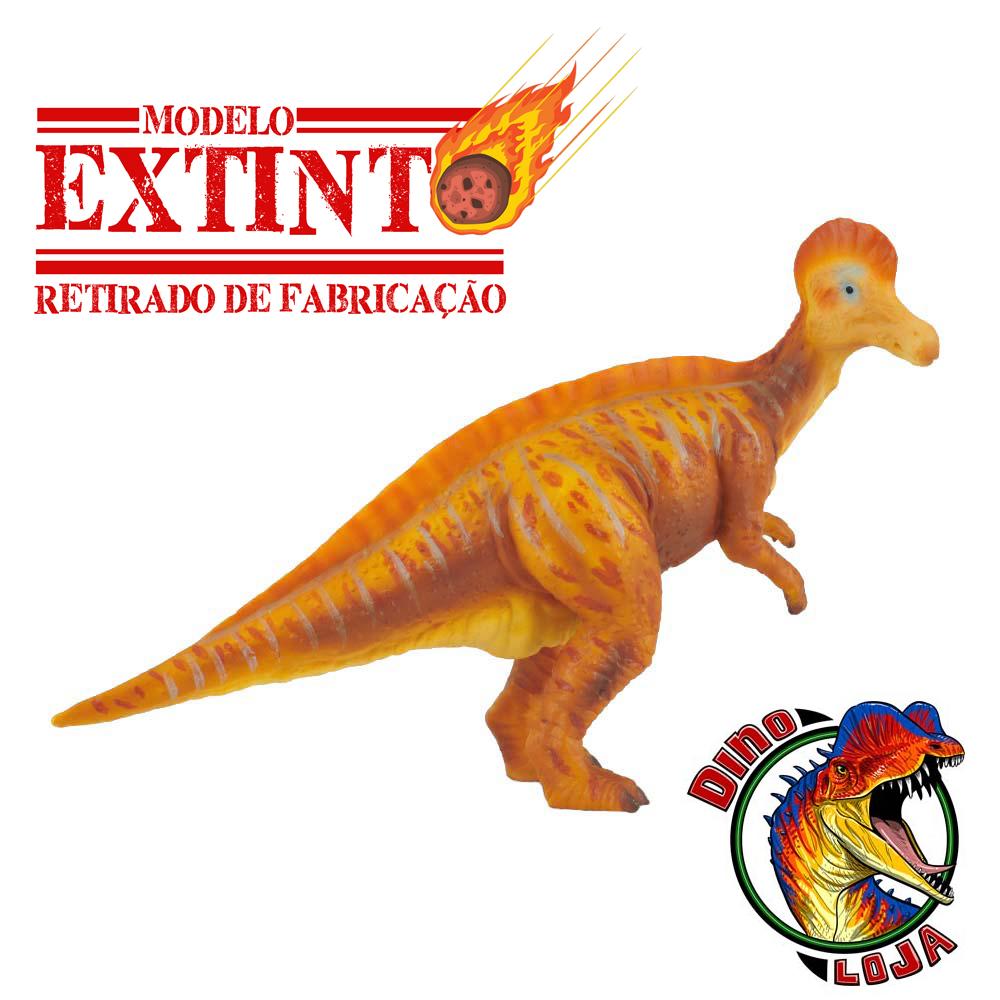 Sobre a miniatura: Uma representação clássica do Coritossauro, em pose bípede com cores bem vivas e chamativas A figura apresenta claramente a famosa crista do dinossauro e é bastante bonita. Feita em plástico pvc durável pintado à mão.
