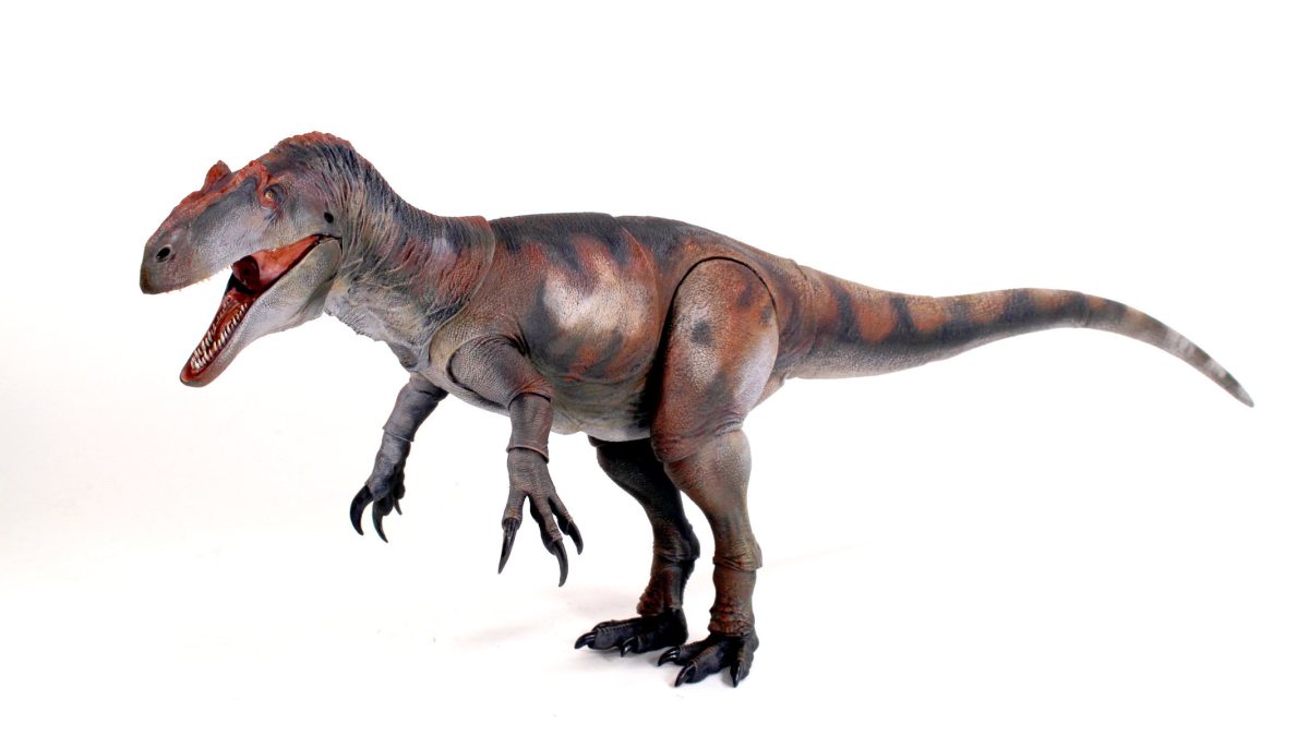 Sobre a espécie: O Allosaurus foi um predador do Período Jurássico, há cerca de 150 milhões de anos atrás. Durante a “Guerra dos Ossos” do final do século XIX, os primeiros paleontólogos estavam correndo para decrever o maior número de espécies quanto possível e muitos dos primeiros fósseis do Allosaurus foram originalmente chamados por outros nomes. O nome que finalmente "pegou", Allosaurus, significa "lagarto diferente", referindo-se aos ossos do pescoço e das costas do animal, que eram diferentes de qualquer outro dinossauro conhecido na época. O alossauro foi um dinossauro terópode de grande porte, um dinossauro carnívoro de até 10 metros de comprimento e viveu onde hoje é a América do Norte e Europa.
