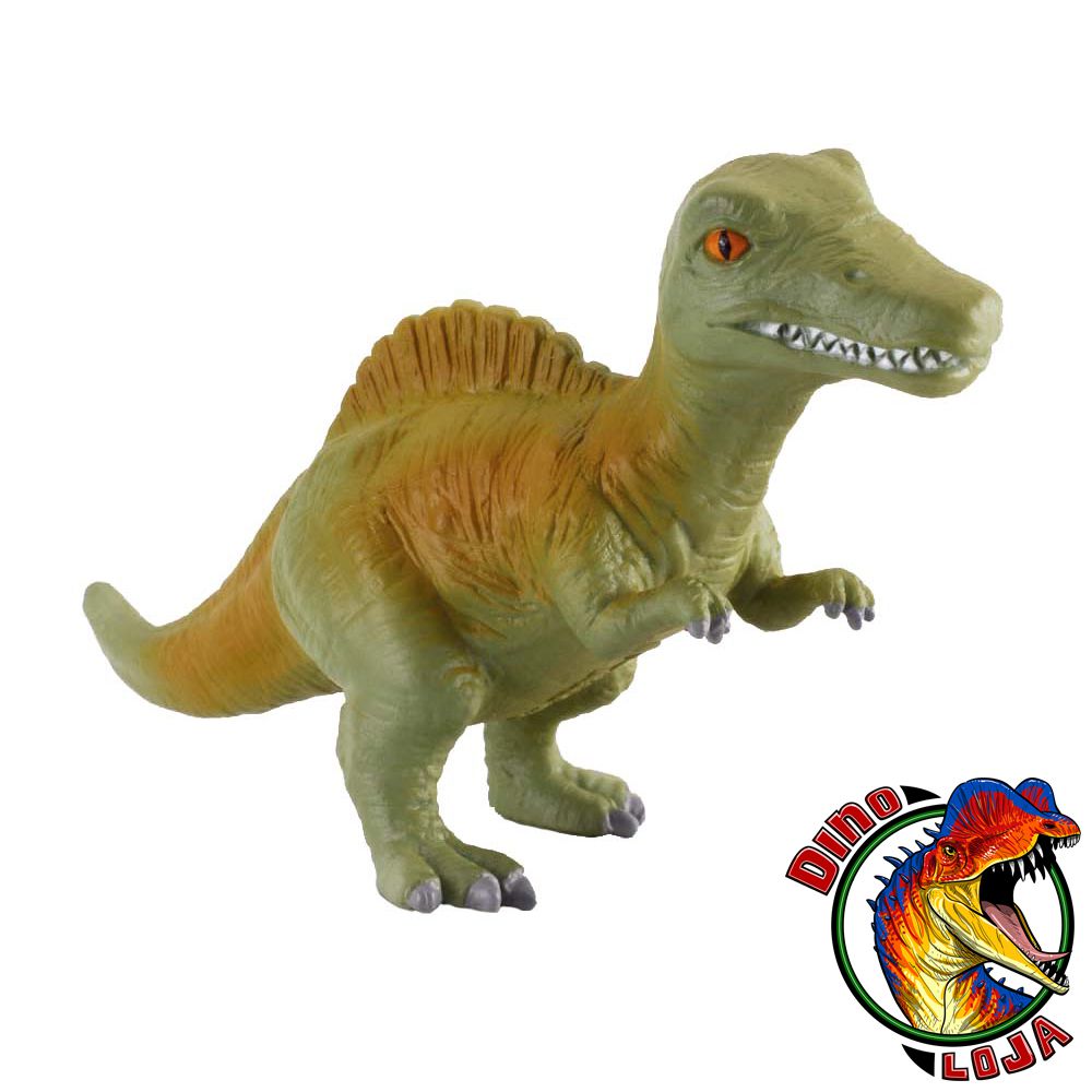 Sobre a espécie: Spinosaurus é uma espécie de dinossauro carnívoro descoberto na África. Viveu no período Cretáceo e se alimentava primariamente de peixes, porém provavelmente caçava outros dinossauros também. Tinha um focinho alongado e uma vela nas costas formada por suas vértebras.