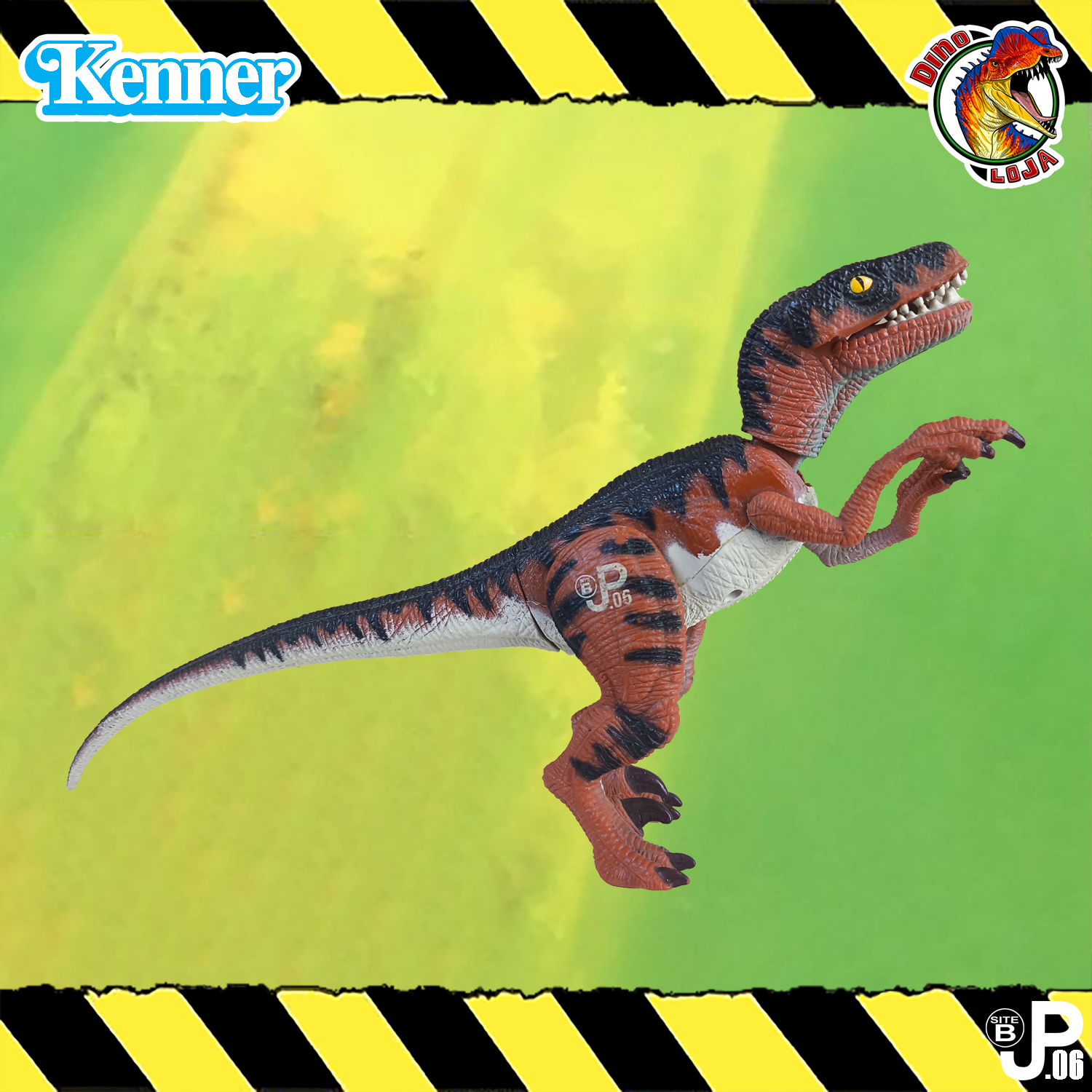Sobre a espécie: O Velociraptor é um dinossauro carnívoro predador do período Cretáceo, vivia no que hoje é o deserto de Gobi, na Mongólia. Era ágil e inteligente, possuindo garras curvas no dedo do pé com as quais agarrava e feria suas presas. Estudos recentes indicam que o Velociraptor verdadeiro era um animal pequeno, de aproximadamente 2 metros de comprimento e apenas 80 cm de altura. Provavelmente era emplumado. Ele era parente de um animal encontrado na América do Norte chamdo Deinonychus ou Dinonico, como falam em português. O Deinonychus era bem maior e foi a base de inspiração do Velociraptor do filme Jurassic Park.