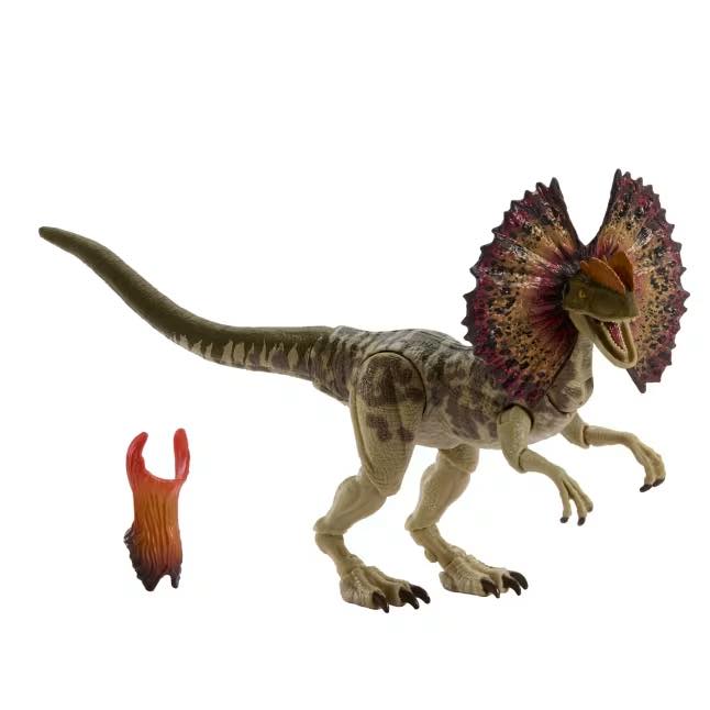 Sobre a miniatura: O Dilofossauro Hammond Collection Mattel, edição exclusiva. Miniatura com vários pontos de articulação, acabamento realista feito na escala de 1:18 polegadas. A miniatura vem em uma bela caixa de apresentação com a temática Hammond Collection, a nova coleção da Mattel que substitui a antiga Amber Collection. Representa bem o Dilophosaurus do filme Jurassic World Dominion, com um novo padrão de cores mais amarelado e manchas estilo leopardo no colarinho. Acompanha peça extra como acessório, o colarinho intercambiável, pode usar o colarinho fechado ou aberto.