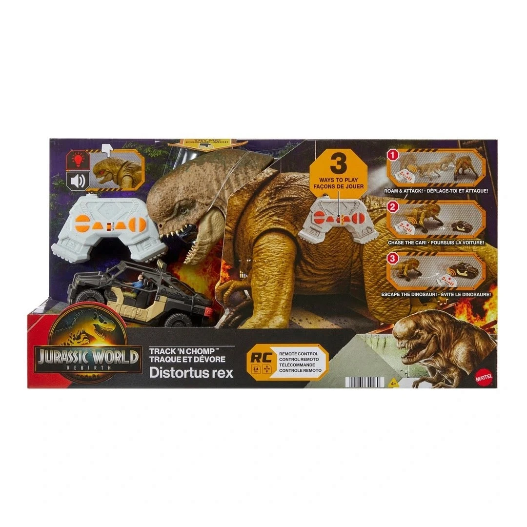 Sobre a miniatura: Uma miniatura muito interessante da nova linha Jurassic World Rebirth da Mattel, brinquedo de controle remoto. Representa o dinossauro vilão mutante Distortus rex ou D-rex, do filme. É um dos principais antagonistas do filme para os protagonistas. Além do dinossauro o conjunto contém um veículo e um personagem humano, para recriar a perseguição final do filme. Para mais diversão com dinossauros, baixe o aplicativo Jurassic World Facts (Android e iOS) para escanear e assistir seu dinossauro ganhar vida, aprender fatos de ataque, comparar estatísticas e muito mais!