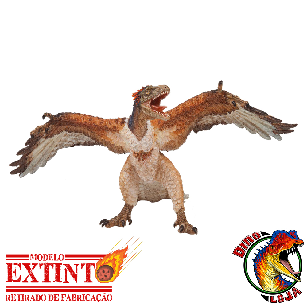 Sobre a miniatura: Uma réplica de dinossauro que retrata com muita fidelidade a natureza do dinossauro Archaeopteryx. Ótimo boneco de dinossauro educacional, para coleções e também para brincar. Pode ser usado por professores de ciências e aulas de evolução. Altamente detalhado e com texturização perfeita, além de uma pintura muito bonita. O Arqueopterix Papo é um dos melhores modelos em questão de detalhamento e realismo retratando essa espécie. Ricamente texturizado, este brinquedo de dinossauro mostra claramente as penas que fazem do Arqueopterix tão famoso, todas esculpidas com capricho.